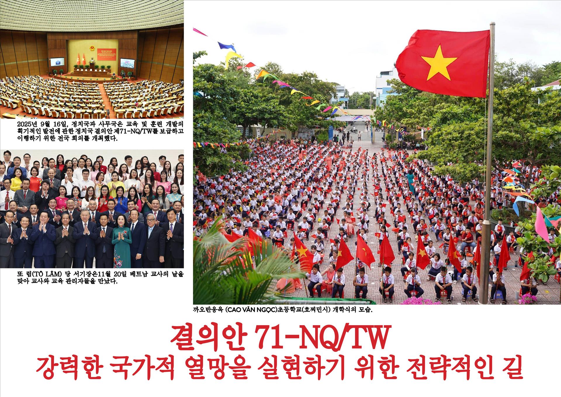 2025년 8월 22일, 또 럼(Tô Lâm) 당 서기장은 정치국을 대표하여 교육 및 훈련 개발의 획기적인 진전에 관한 결의안 71-NQ/TW에 서명하고 발표하면서, 교육이 국가의 미래를 결정하는 핵심 동력이며, 강력한 베트남이라는 열망을 실현하는 "열쇠"임을 계속해서 확인했다.