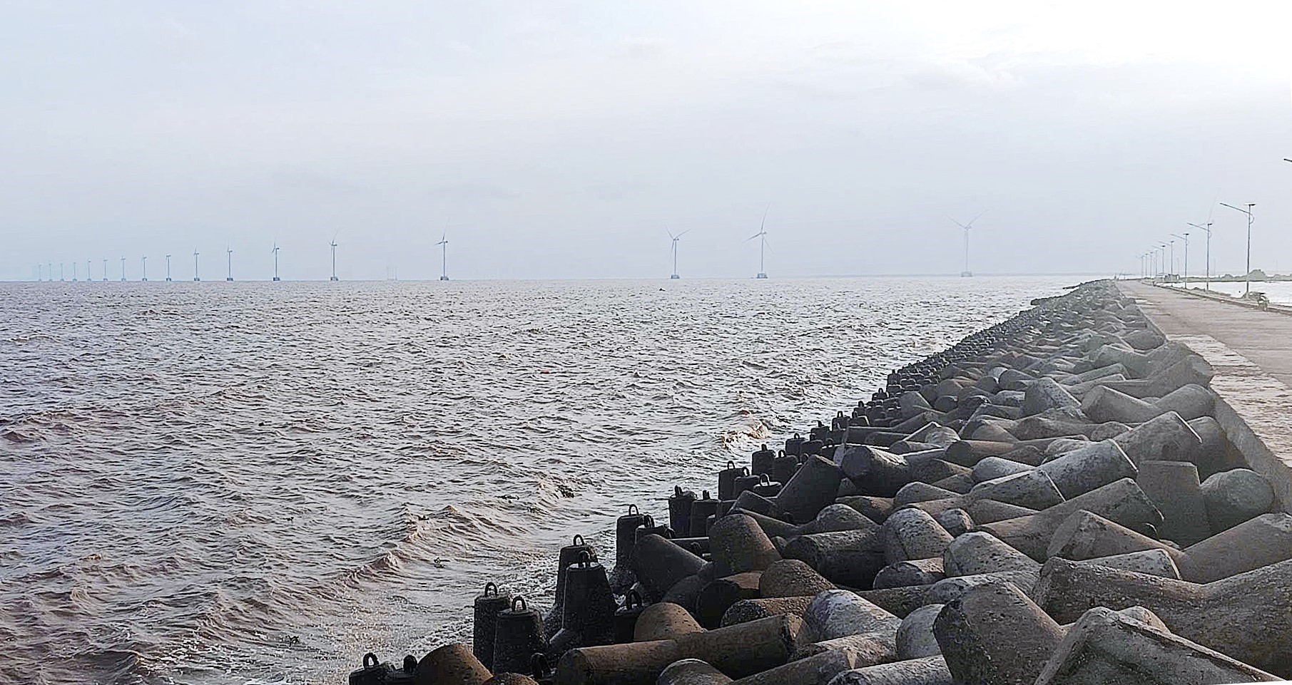 까마우(Ca Mau)성 가인하오(Ganh Hao) 지역에 완공된 파도 방지 제방 시스템은 해안림 보호 및 해안 제방 침식 방지에 크게 기여하고 있다. 사진: 찬 다(Chanh Da) – 베트남통신사