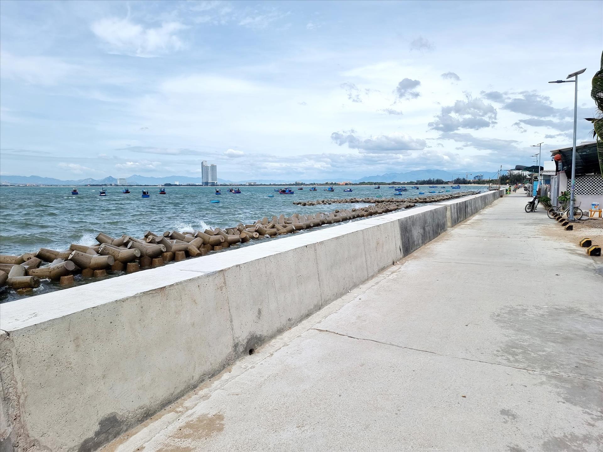 기후 변화의 도전에 직면하여 닌투언(Ninh Thuan, 현 카인화)성은 산사태와 침식이 자주 발생하는 취약 지역을 중심으로 해안 및 강변 제방 시스템을 견고화하기 위해 자원을 집중적으로 동원하고 있다. 현재 도 전체에는 총 길이 12,274m의 해안 제방 4개소, 총 길이 21.533km의 강변 및 해안 방파제 19개소, 그리고 판랑-탑짬(Phan Rang - Thap Cham) 주거 지역을 보호하는 11.94km 길이의 강 제방(딩강 북쪽 제방) 1개소가 설치되어 있다. 사진: 응우옌 타인(Nguyen Thanh) – 베트남통신사