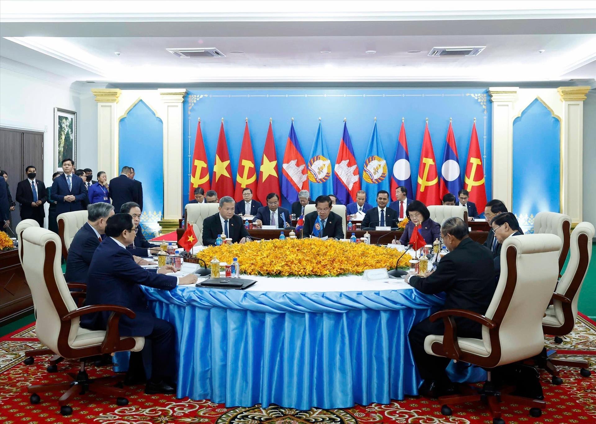캄보디아 인민당, 베트남 공산당, 라오스 인민혁명당 등 3개 당 간의 고위급 회동. 사진: 통느엇(Thống Nhất) – 베트남통신사