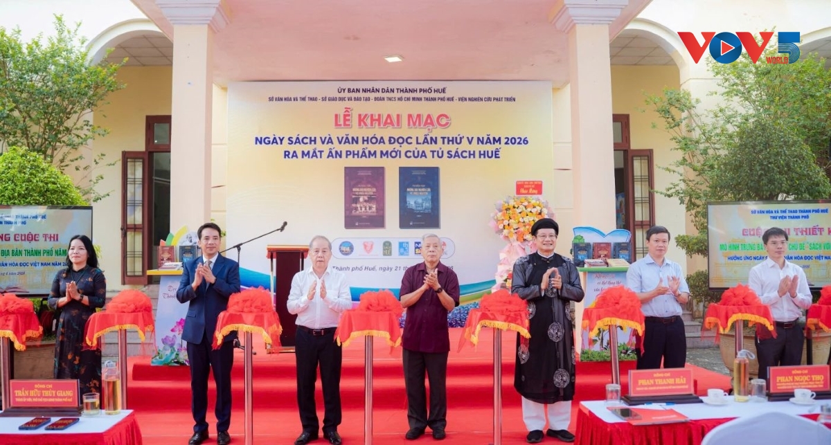 같은 날 오전, 중부 지역의 문화 관광지 후에(Huế)시에서도 후에시 종합도서관과 문화체육국의 주관으로 제5회 책과 독서 문화의 날 개막식이 열렸다. ‘책 - 지식 - 국가 발전의 열망’이라는 주제로 열린 이번 행사에서는 ‘2026 독서 문화 대사 경연대회’와 ‘책과 후에의 유산’을 주제로 한 자료 전시 모형 디자인 공모전이 발족되었다. 특히 조직위원회는 이 자리를 빌려 총 2,700여 쪽 분량의 2권짜리 간행물인 『응우옌 왕조 연구 논문집』을 출간했다. 이 논문집은 165편의 대표적인 연구 성과를 엄선하여 응우옌 왕조의 역사적 가치를 조명하는 동시에, 독보적인 역사‧문화 중심지로서 후에시의 위상을 확고히 하는 데 기여했다. 행사에서 쩐 흐우 투이 장(Trần Hữu Thùy Giang) 후에시 인민위원회 부위원장은 다음과 같이 강조했다.