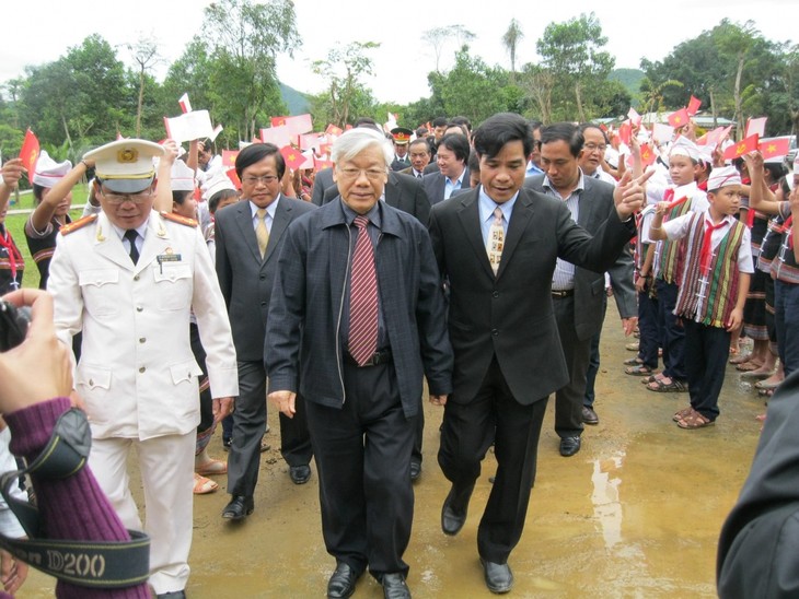 베트남 중부 지방 주민들에게 새겨진 故 응우옌 푸 쫑 서기장의 깊은 인상 - ảnh 1꽝남성 히엡득(Hiệp Đức)현을 방문한 故 응웬 푸 쫑 서기장 (사진: VOV)