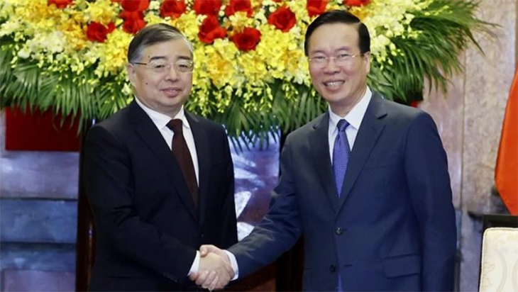 중국 공산당 서기인 리수레이(李书磊) 중국 중앙 선전부장을 접견한 보 반 트엉 주석 (사진: 베트남 통신사) |