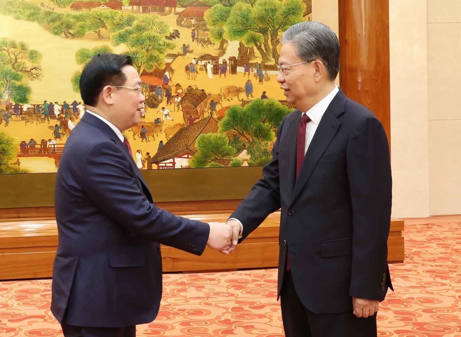 브엉 딩 후에 국회의장과 자오러지(趙樂際) 중국 전국인민대표대회 상무위원장. 사진:난상(Nhan Sáng)-베트남 통신사