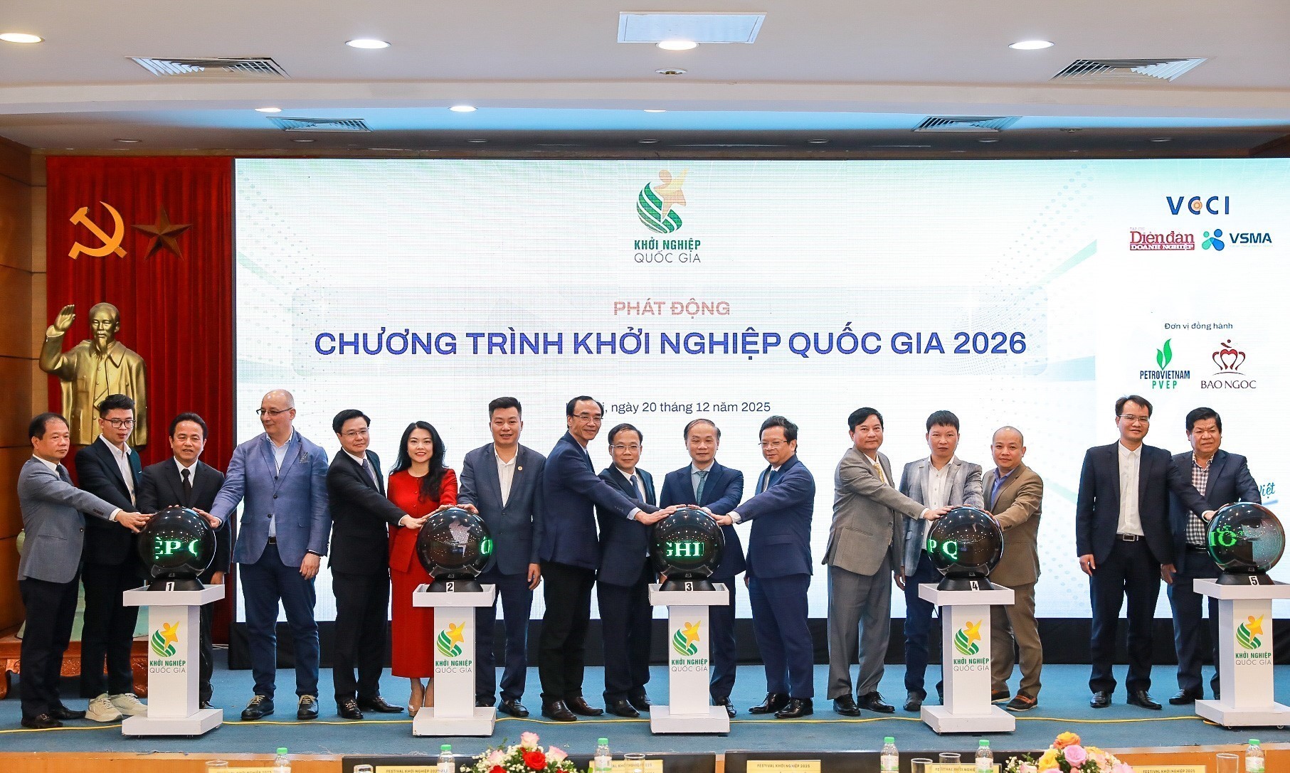 2025년 12월 20일 하노이에서 베트남 상공회의소(VCCI)가 주관하는 '국가 스타트업 프로그램'의 일련의 행사들이 개최되었다. 이번 행사에는 '2025 국가 스타트업 프로젝트 개발 프로그램 결승전'과 '2025 국가 스타트업 페스티벌' 등이 포함되었다. 사진: 칸 호아(Khánh Hoà) – 베트남통신사