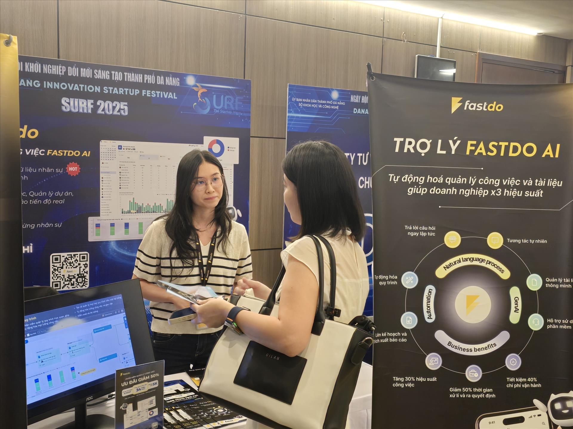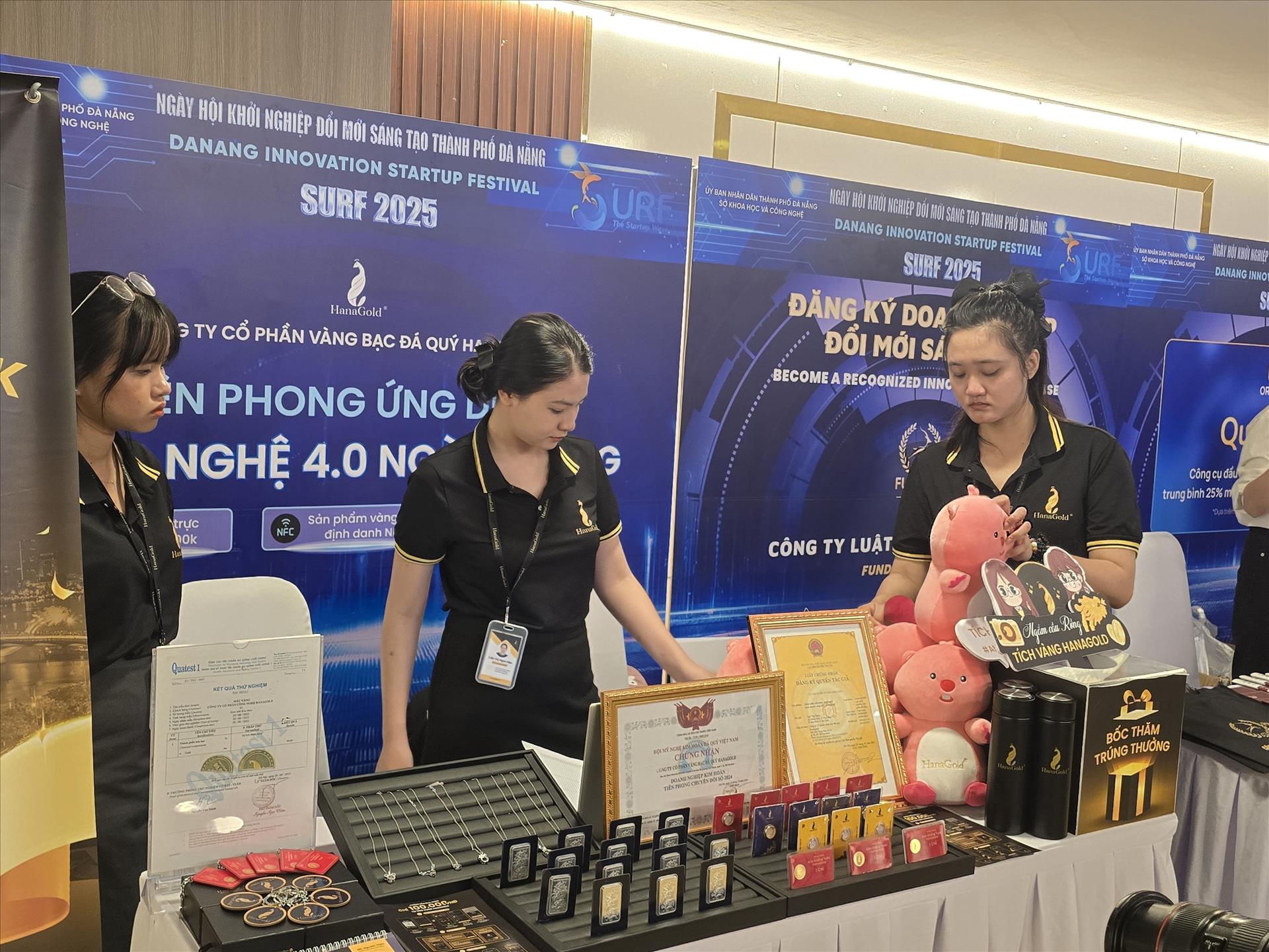 다낭 혁신 스타트업 축제 - SURF 2025 프로그램의 일환으로 열린 '혁신 스타트업 전시회'에서 다양한 IT 제품들이 전시되고 있다. 사진: 코아 뜨엉(Khoa Chương) - 베트남통신사