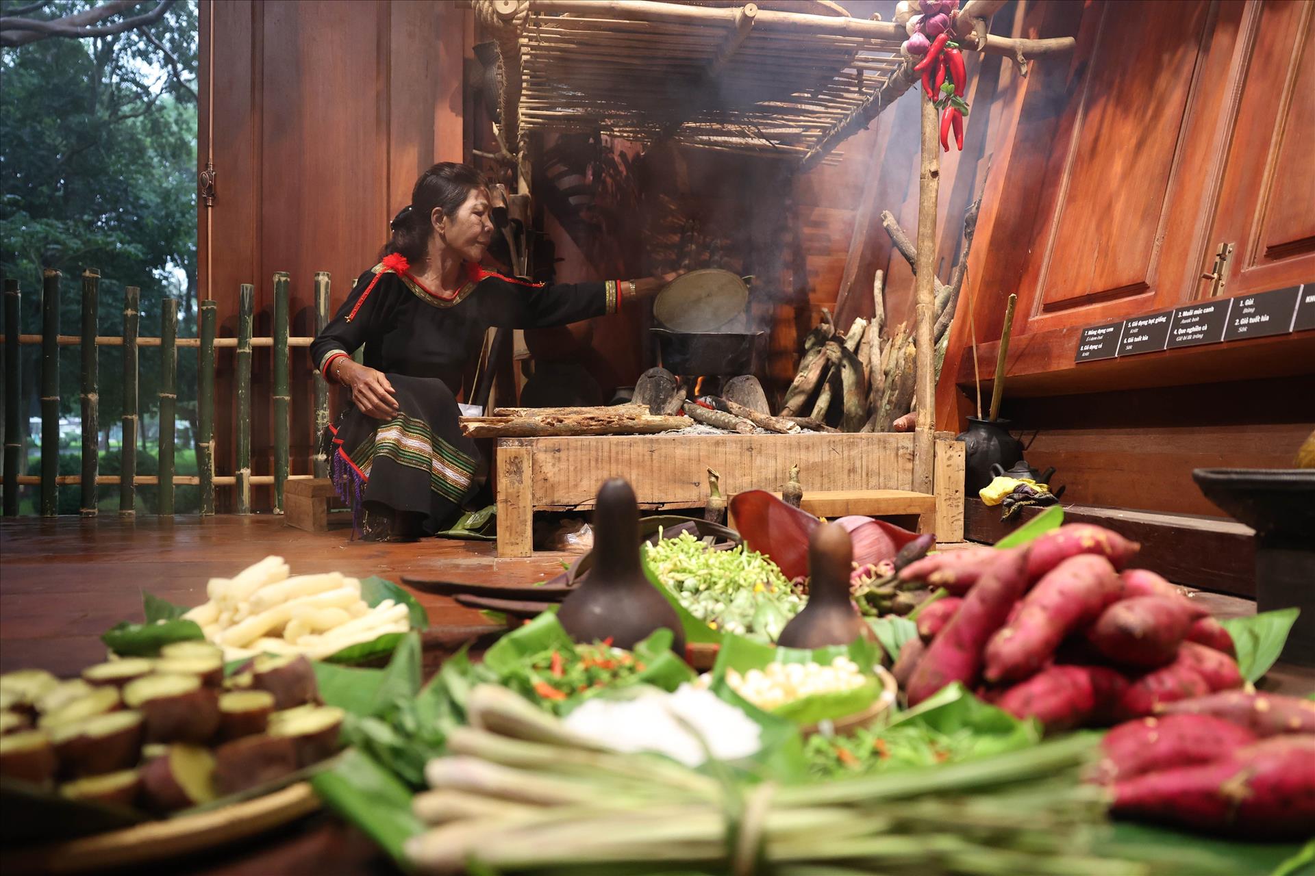 에데(Ê Đê)족 여성이 전통 방식에 따라 장작불 위에 무쇠솥을 걸고 생두를 볶고 있다. 기계식 로스팅이 일반화된 오늘날에도 에데족은 정성스럽게 수확한 커피콩을 직접 손으로 저어가며 볶아내는 전통을 고수하고 있다. 사진:두언 안/ 베트남 통신사