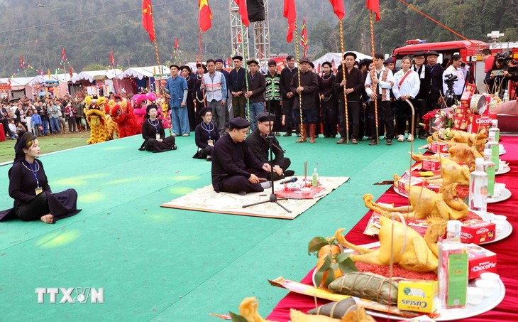 바베(Ba Bể)면의 각 마을 주민들이 롱똥 축제에서 풍년을 기원하는 제물을 올리고 있다. |