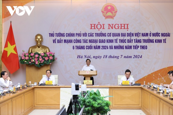 이날 회의에서 팜 밍 찡 총리는 지난 기간 베트남의 경제 외교 작업이 많은 긍정적이고 실질적, 효과적인 결과를 거뒀다고 평가했다. 그러나 총리에 따르면 향후 세계에 지원 고갈, 기후변화, 인구 고령화, 강국들 간의 정치적 경쟁, 베트남의 통화 정책에 악영향을 미치는 강국들의 인플레이션, 글로벌 공급망‧생산사슬 파괴 등을 비롯한 많은 도전이 잠재하고 있다. 따라서 총리는 외교계, 해외 베트남 대사관‧총영사관 등이 높은 결심으로 수출 성장, 협력 환경 개선, 경제‧무역‧투자‧민간교류‧관광 촉진 등에 중점을 두고 국제사회와 협력을 확대해 나갈 것을 요구했다. 이와 더불어 총리는 베트남이 디지털 경제, 순환 경제, 녹색 경제, 공유 경제, 지식 경제 등과 같은 새로운 성장 원동력들을 촉진하고 있는 배경 속에서 해외 베트남 대표 기관들이 이러한 신규 성장 원동력을 위한 투자를 유치하도록 힘써야 한다고 강조했다.