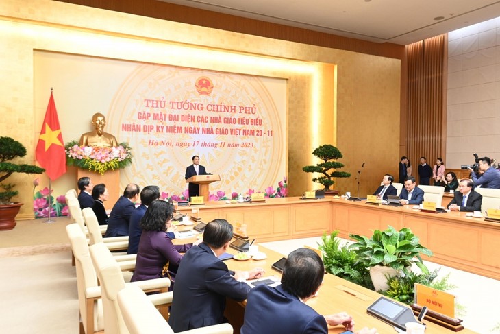 베트남 스승의 날(11월 20일)을 맞아 11월 17일 오후 하노이에서 팜 찡 찐 총리는 2023년 우수 교사 및 교육 관리자들과 만남을 가졌다.