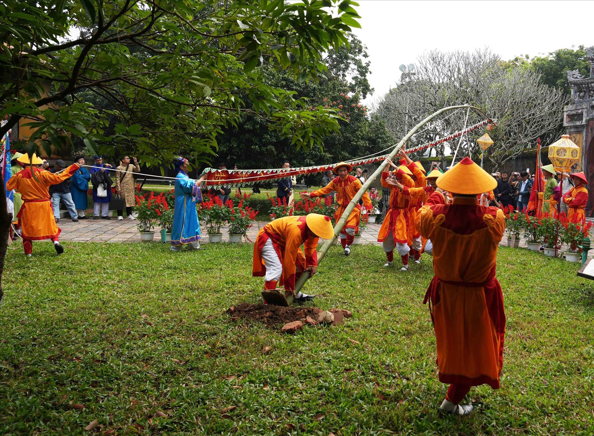후에 황성 히엔럼깍(Hiển Lâm Các)정원에서 네우를 세우기 의식을 진행한다.사진: 응웬리(Nguyên Lý)-베트남통신사