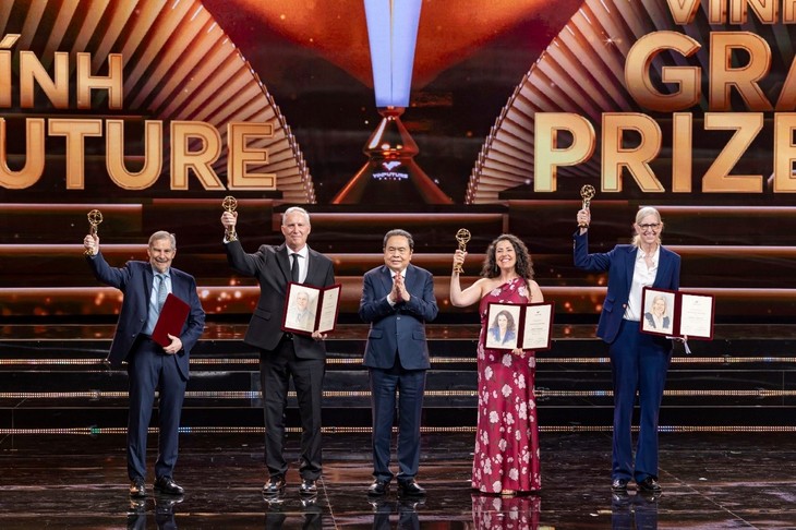 2026년 제6회 빈퓨처상, 우수 후보 공식 접수 시작 - ảnh 1쩐 타인 먼 국회의장이 우수한 과학자들에게 2025년 빈퓨처(VinFuture) 상을 수여하고 있다. (사진: 조직위원회)