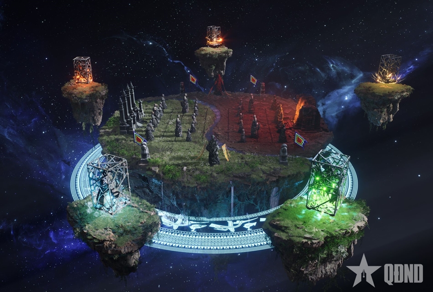 여정의 끝에는 대형 옻칠화(6.5m x 4m)가 있다. 이 작품은 베트남 건국 신화인 Âu Cơ의 100 개의 알’을 달걀껍질 소재로 재현한다. 이는 단순한 소재 선택을 넘어, 생성·해체·재생이라는 끝없는 순환, 오행(목-화-토-금-수: 나무-불-땅-금속-물)의 순환을 은유한다. 전시장에 설치된 스크린에서는 3D 영상이 상영되어 국제 관람객의 이해를 돕는다.