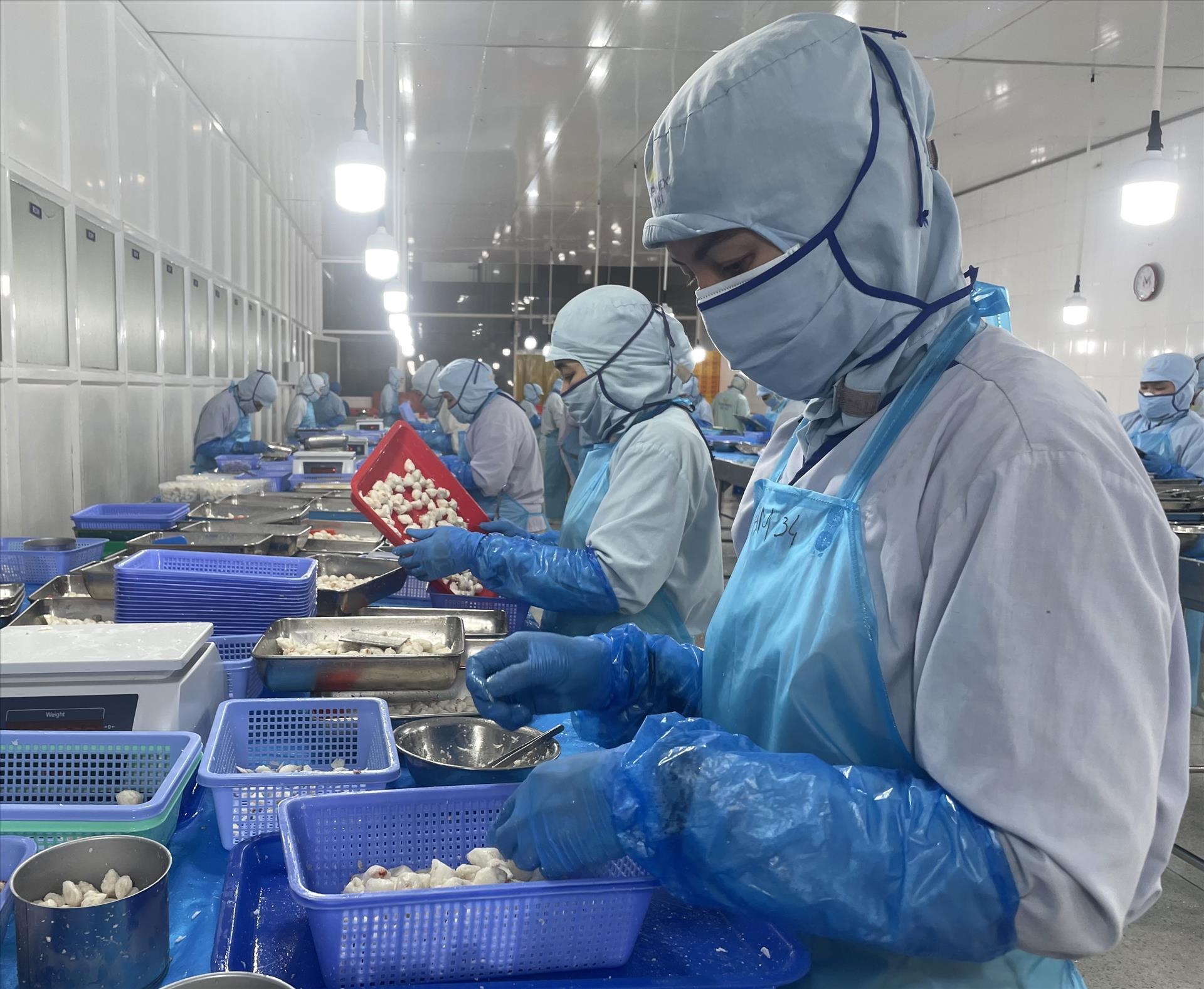 시스피멕스 공원(호치민시)에서 근로자들이 캔용 게살을 전처리하고 있다. 사진: 흐엉장 – 베트남통신사