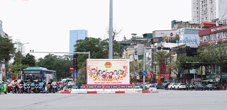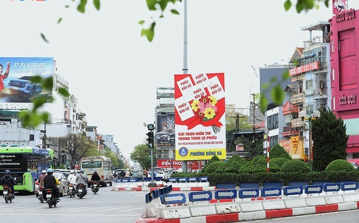 ໃນຊຸມວັນຕົ້ນເດືອນ ມີນາ, ຢູ່ທົ່ວທຸກແຫ່ງຫົນຖະໜົນສາຍຕ່າງໆຂອງນະຄອນຫຼວງ ຮ່າໂນ້ຍ ເຕັມໄປດ້ວຍສີແດງຂອງທຸງຊາດ, ປ້າຍຄຳຂວັນ ແລະ ປ້າຍໂຄສະນາ ມຸ່ງໄປເຖິງວັນບຸນທົ່ວປວງຊົນໄປປ່ອນບັດເລືອກຕັ້ງ ວັນທີ 15 ມີນາ 2026. ຈາກບັນດາເສັ້ນທາງຢູ່ເຂດໃຈກາງຕະຫຼອດຮອດແຕ່ລະເຂດຊຸມຊົນ, ວຽກງານການກະກຽມໃຫ້ແກ່ເຫດການການເມືອງສຳຄັນນີ້ ພວມໄດ້ຮັບການຜັນຂະຫຍາຍຢ່າງຮີບດ່ວນ, ສ້າງບັນຍາກາດທີ່ເຄັ່ງຂຶມ ແຕ່ກໍເຕັມໄປດ້ວຍຄວາມພາກພູມໃຈ.