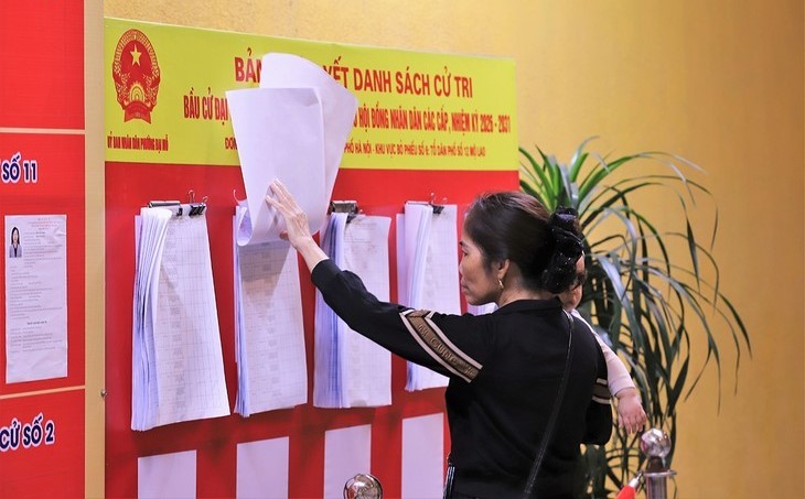 ເຂດຕິດປະກາດບັນຊີລາຍຊື່ຜູ້ມີສິດເລືອກຕັ້ງຢູ່ຈຸດປ່ອນບັດຈຳນວນໜຶ່ງໃນບໍລິເວນ ຮ່າໂນ້ຍ.