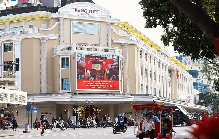 ໜ້າຈໍ led ຂະໜາດໃຫຍ່ຢູ່ບັນດາຖະໜົນຈຸດສຸມຂອງ ຮ່າໂນ້ຍ ໄດ້ກະຈາຍຂ່າວໂຄສະນາກ່ຽວກັບການເລືອກຕັ້ງສະມາຊິກສະພາແຫ່ງຊດຊຸດທີ XVI ແລະ ສະພາປະຊາຊົນທຸກຂັ້ນ ສະໄໝ 2026 – 2031.