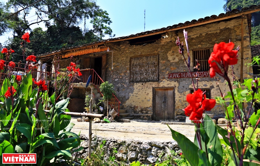 ບັນຍາກາດ ຢູ່ຕໍ່ໜ້າ ເຮືອນຮ້ານດ້ວຍຫີນ ຂອງຊາວ ເຜົ່າ ຂວຍກີ. ພາບ: VNP