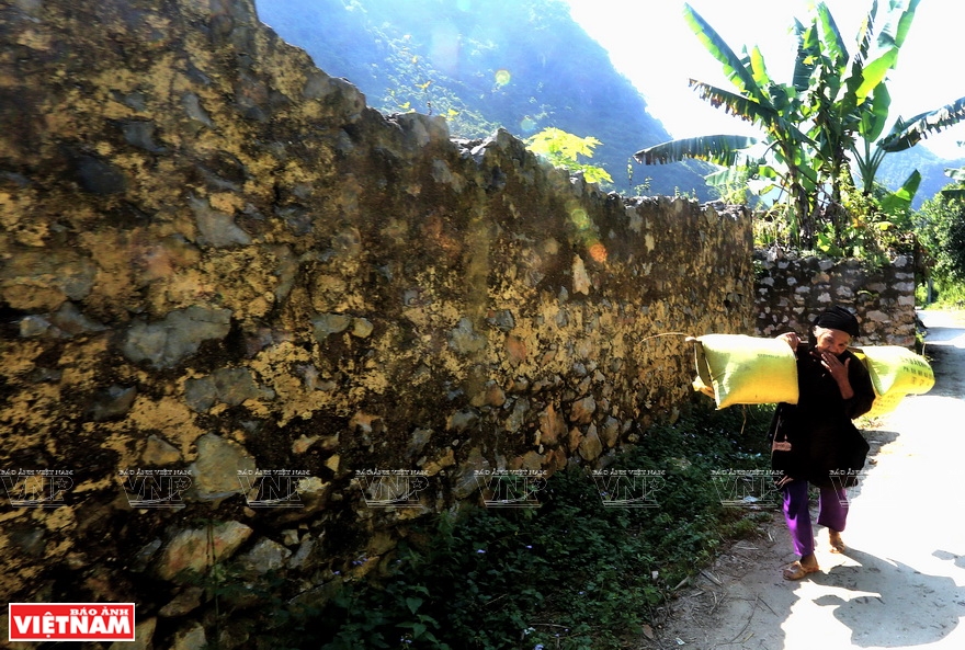 ບັນດາກໍາແພງຫີນ ມີຮ່ອງຮອຍຂອງການເວລາ ຢູ່ ບ້ານ ຂວຍກີ. ສະໄໝສັກດິນາ, ຊາວເຜົ່າ ໄຕ່ ຢູ່ ຂວຍກີ ຖືບັນດາ ຫຼັງເຮືອນຮ້ານດ້ວຍຫີນ ເໝືອນດັ່ງປ້ອມໝັ້ນ ເພື່ອຕ້ານກັບ ການປຸ້ນຈີ້, ທຳລາຍ ຂອງສັດຕູ. ພາບ: VNP