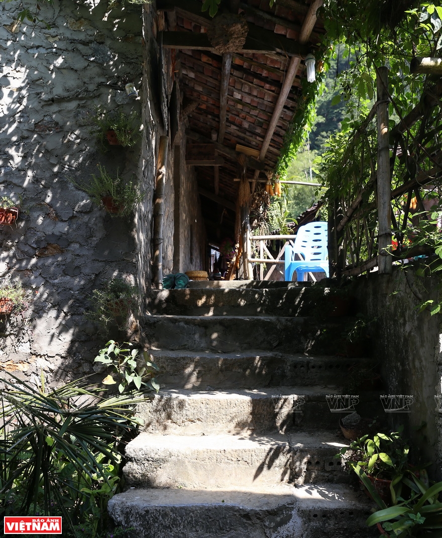 ບັນດາຂັ້ນໄດຫີນ ຂຶ້ນເທິງເຮືອນຮ້ານ ຢູ່ ບ້ານ ຂວຍກີ. ພາບ: VNP