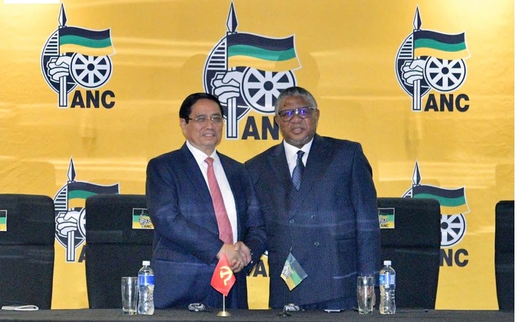 (ທ່ານ ຟ້າມມິນຈິງ ນາຍົກລັດຖະມົນຕີ ຫວຽດນາມ ແລະ ທ່ານ Fikile Mbalula, ເລຂາທິການໃຫຍ່ພັກກອງປະຊຸມໃຫຍ່ຊົນຊາດ ອາຟະລິກາ)