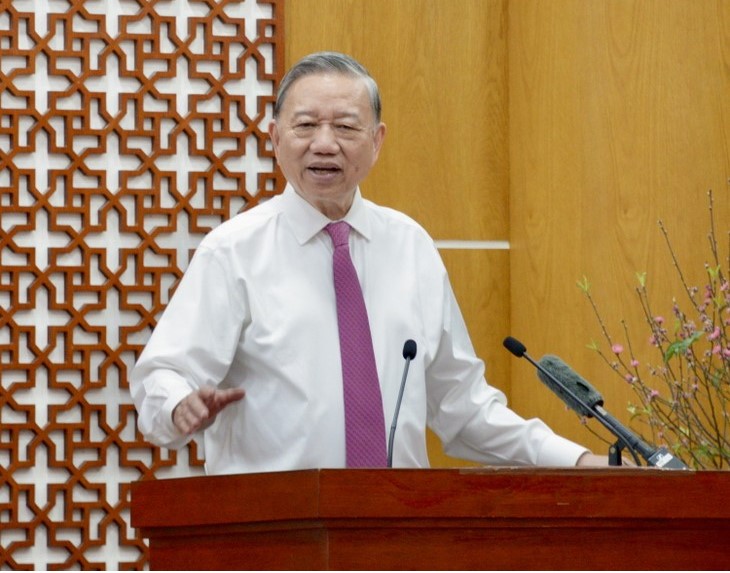 ທ່ານ ໂຕເລິມ ເລຂາທິການໃຫຍ່ຄະນະບໍລິຫານງານສູນກາງພັກກອມມູນິດ ຫວຽດນາມ ກ່າວຄຳເຫັນທີ່ການພົບປະ (ພາບ: VOV)