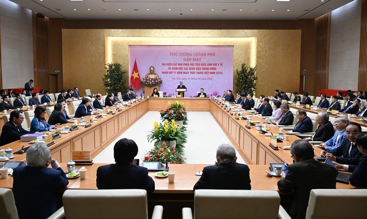 ຕອນບ່າຍວັນທີ 24 ກຸມພາ, ຢູ່ສຳນັກງານລັດຖະບານ, ທ່ານນາຍົກລັດຖະມົນຕີ ຫວຽດນາມ ຟ້າມມິງຈິງ ໄດ້ພົບປະກັບຜູ້ຕາງໜ້າບັນດານັກຊ່ຽວຊານ, ນັກວິທະຍາສາດດີເດັ່ນໃນຂົງເຂດສາທາລະນະສຸກ ແລະ ຜູ້ອຳນວຍການບັນດາໂຮງໝໍຂັ້ນສູນກາງ ເນື່ອງໃນໂອກາດສະເຫຼີມສະຫຼອງວັນແພດໝໍ ຫວຽດນາມ ຄົບຮອບ 71 ປີ (27 ກຸມພາ).