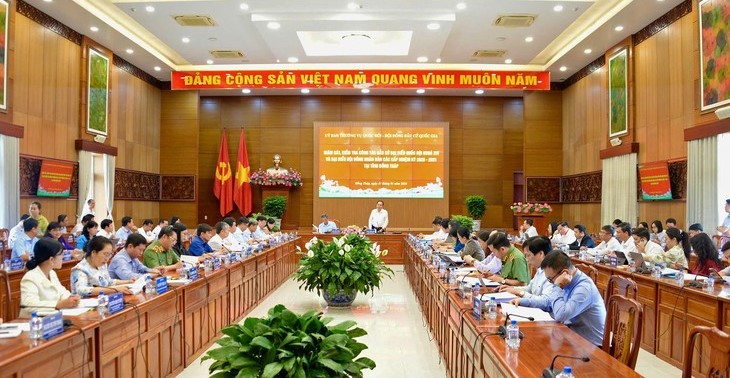 ທ່ານປະທານສະພາແຫ່ງຊາດ ເຈິ່ນແທັງເໝິນ, ປະທານສະພາເລືອກຕັ້ງແຫ່ງຊາດ ພ້ອມກັບຄະນະຕິດຕາມກວດກາ ໄດ້ການເຮັດວຽກກັບກຳມະທິການເລືອກຕັ້ງແຂວງ ດົ່ງທາບ ກ່ຽວກັບວຽກງານເລືອກຕັ້ງສະມາຊິກສະພາແຫ່ງຊາດຊຸດທີ XVI.