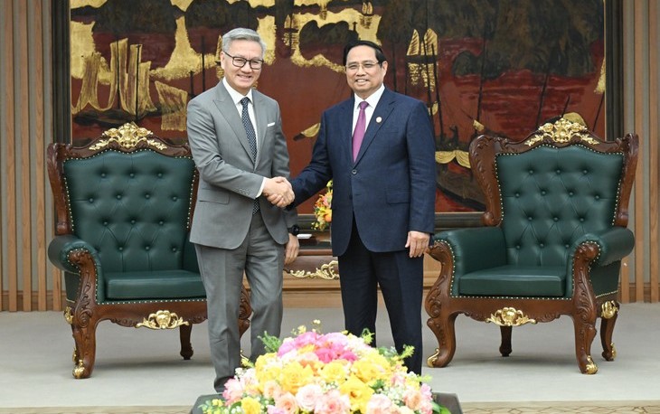 ທ່ານ ຟ້າມມິງຈິງ ນາຍົກລັດຖະມົນຕີ ຫວຽດນາມ ຕ້ອນຮັບ ທ່ານ ທອງສະຫວັນ ພົມວິຫານ ລັດຖະມົນຕີກະຊວງການຕ່າງປະເທດ ລາວ (ພາບ: VOV)
