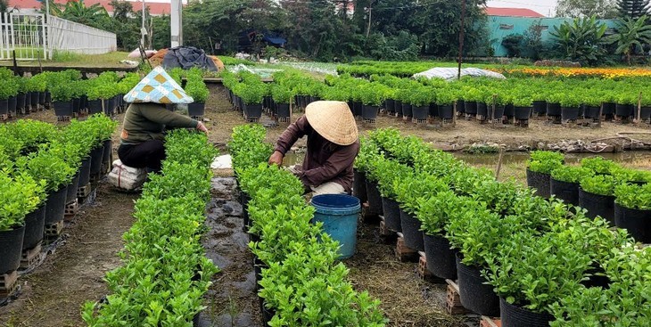 ຊາວໝູ່ບ້ານດອກໄມ້ ໝີ້ຟອງ ມີຄວາມຟ້າວຟັ່ງ ກັບວຽກງານເພື່ອກະກຽມດອກໄມ້ໃຫ້ຍາມບູນເຕັດ (ພາບ: VOV)