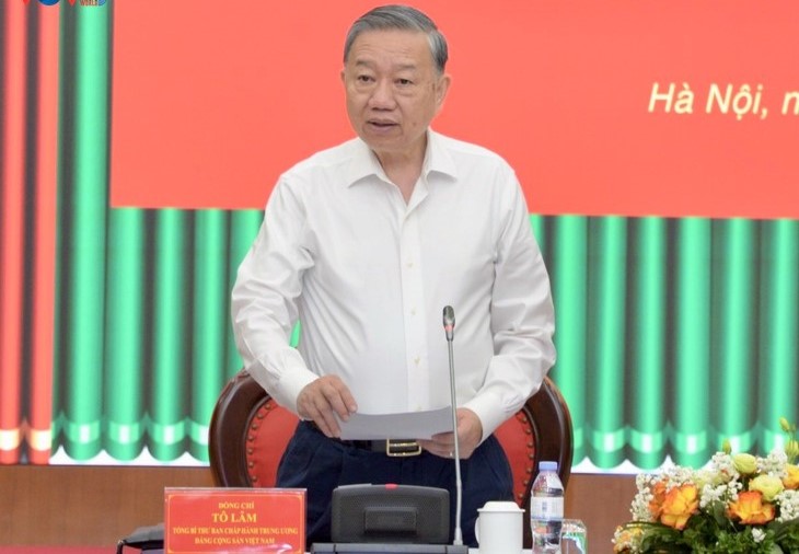 ຕອນບ່າຍວັນທີ 22 ພຶດສະພາ, ຢູ່ຮ່າໂນ້ຍ, ທ່ານ ໂຕເລີມ ເລຂາທິການໃຫຍ່ຄະນະບໍລິຫານງານສູນກາງພັກ ຄອມມູນິດ ຫວຽດນາມ, ຫົວໜ້າຄະນະຊີ້ນຳສູງການພັກກ່ຽວກັບການປ້ອງກັນ, ຕ້ານການສໍ້ລາດບັງຫຼວງ, ປະກົດການຫຍໍ້ທໍ້, ໄດ້ໄປຢ້ຽມຢາມ ແລະ ເປັນປະທານການເຮັດວຽກກັບຄະນະການເມືອງພາຍໃນສູນກາງພັກ. ທ່ານ ໂຕເລີມ ເລຂາທິການໃຫຍ່ຄະນະບໍລິຫານງານສູນກາງພັກ ຄອມມູນິດ ຫວຽດນາມ ທ່ານເລຂາທິການໃຫຍ່ ໂຕເລິມ ຊີ້ແຈ້ງຄວາມ ຮຽກຮ້ອງລຸລ່ວງນັ້ນແມ່ນ ປະຕິບັດໃຫ້ສຳເລັດ 2 ເປົ້າໝາຍຍຸດທະສາດຮອດປີ 2030 ຫວຽດນາມ ກາຍເປັນປະເທດພັດທະນາທີ່ມີລາຍຮັບປານກາງສູງ, ຮອດປີ 2045 ກາຍເປັນປະເທດພັດທະນາມີລາຍຮັບສູງ. ດັ່ງນັ້ນ, ຄະນະການເມືອງພາຍໃນສູນກາງພັກ ຕ້ອງເປັນເຈົ້າການພົບເຫັນ, ຄົ້ນຄວ້າ, ເປັນເສນາທິການບັນດາບັນຫາໃຫຍ່, ບັນຫາຍາກໃນວຽກງານການເມືອງພາຍໃນ, ວຽກງານປ້ອງກັນ, ຕ້ານການສໍ້ລາດບັງຫຼວງ, ຟຸມເຟືອຍ, ປະຕິຮູບນິຕິກຳຕິດພັນກັບສະພາບການພັດທະນາຕົວຈິງຂອງປະເທດຊາດ. ທ່ານເລຂາທິການໃຫຍ່ ໂຕເລິມ ກໍໃຫ້ເອົາໃຈໃສ່ 3 ການກຳນົດທິດໃຫຍ່ ເຊິ່ງຄະນະການເມືອງພາຍໃນສູນກາງພັກຄວນໃຫ້ຄວາມສົນໃຈ.