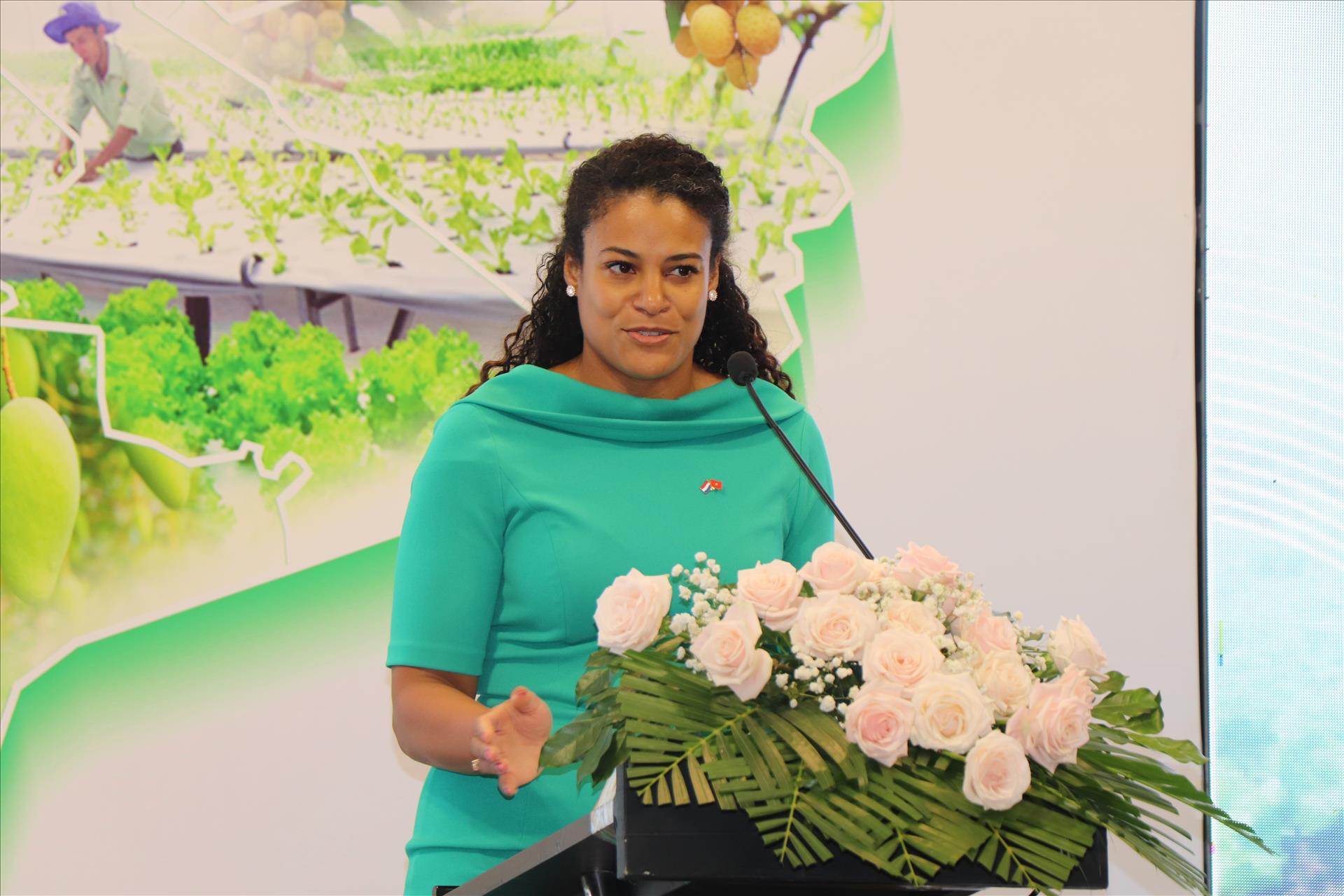 ທ່ານນາງ Raïssa Marteaux, ກົງສຸນໃຫຍ່ ແຫ່ງຣາຊະອານາຈັກ ໂຮນລັງ ປະຈຳ ນະຄອນ ໂຮ່ຈີມິນ, ໃຫ້ຄຳໝັ້ນສັນຍາວ່າ ໂຮນລັງ ຈະແບ່ງປັນຄວາມຮູ້, ເຕັກໂນໂລຊີ ແລະ ຮ່ວມມືເພື່ອຜົນປະໂຫຍດລວມທາງດ້ານເສດຖະກິດ ແລະ ສິ່ງແວດລ້ອມ ຢູ່ ຫວຽດນາມ. ພາບ: ທູຮ່ຽນ – VNA