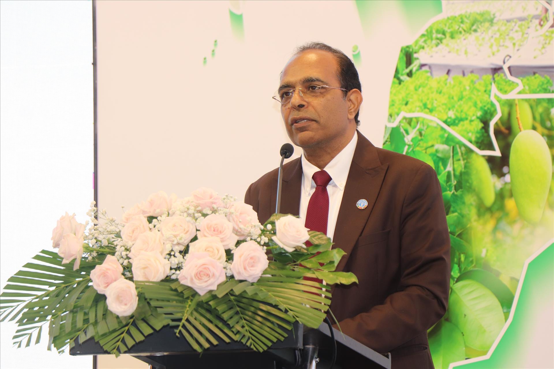 ທ່ານ Vinod Ahuja, ຜູ້ຕາງໜ້າອົງການ FAO ປະຈຳ ຫວຽດນາມ, ແບ່ງປັນກ່ຽວກັບສິ່ງທ້າທາຍທີ່ເຂດທົ່ງພຽງແມ່ນ້ຳຂອງພວມປະເຊີນໜ້າ ໃນການເຮັດກະສິກຳ. ພາບ: ທູຮ່ຽນ – VNA