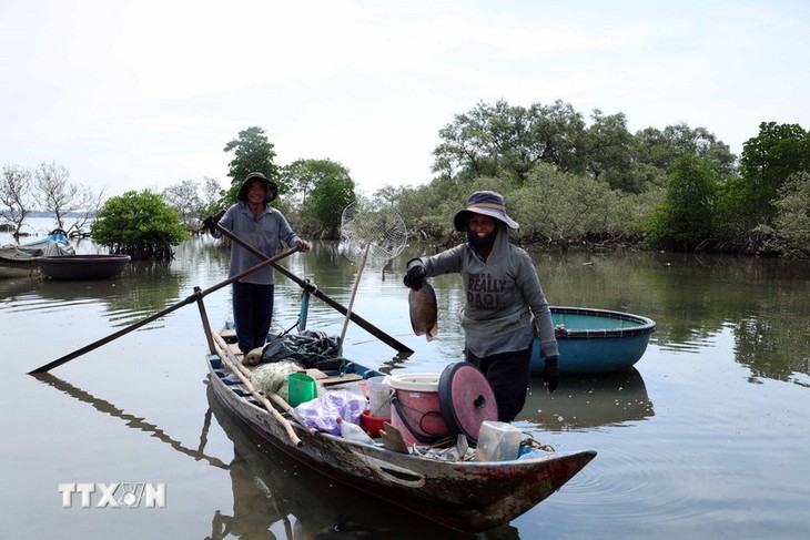 ປະຊາຊົນຂຸດຄົ້ນສິນໃນນ້ຳ ຢູ່ຕາແສງ ນຸຍແທັ່ງ, ນະຄອນ ດ່າໜັງ (ພາບ: TTXVN)