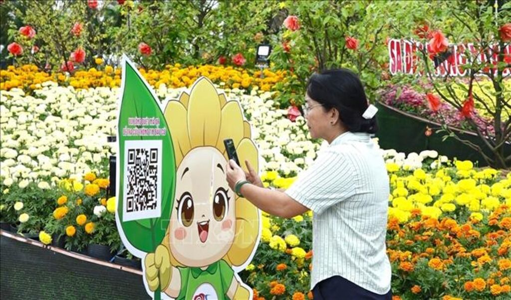 ກະດານໂຄສະນາປະຊາສຳພັນ “ວັນເລືອກຕັ້ງ” ທີ່ຕັ້ງຢູ່ຕໍ່ໜ້າປະຕູສຳນັກງານ ຄະນະກຳມະການປະຊາຊົນ ແຂວງ ສະແດັກ (ແຂວງ ດົງທັບ), ມີການພິມລະຫັດ QR code ເພື່ອຊອກຫາຂໍ້ມູນການເລືອກຕັ້ງ.