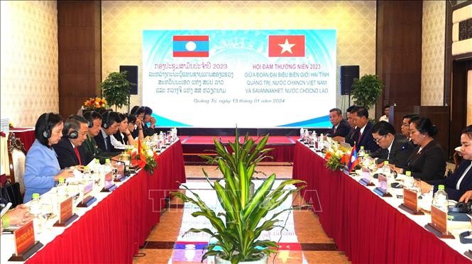 ວັນທີ 13 ມັງກອນ, ກອງປະຊຸມພົບປະເຈລະຈາປະຈຳປີ 2023 ກ່ຽວກັບວຽກງານຊາຍແດນ ລະຫວ່າງ ຄະນະຜູ້ແທນສອງແຂວງ ກວ໋າງຈິ ຂອງ ຫວຽດນາມ ກັບ ແຂວງ ສະຫວັນນະເຂດ ຂອງ ລາວ ໄດ້ດຳເນີນຢູ່ນະຄອນ ດົງຮ່າ, ແຂວງ ກວ໋າງຈິ. ທີ່ກອງປະຊຸມ, ຄະນະຜູ້ແທນສອງແຂວງ ກວ໋າງຈິ ແລະ ສະຫວັນນະເຂດ ໄດ້ລົງນາມໃນບົດບັນທຶກກອງປະຊຸມ ດ້ວຍບັນດາເນື້ອໃນຮ່ວມມືໃນປີ 2024. ຕາມນັ້ນແລ້ວ, ສອງຝ່າຍສືບຕໍ່ປະຕິບັດວຽກງານໂຄສະນາເຜີຍແຜ່, ຂົນຂວາຍປະຊາຊົນປະຕິບັດບັນດາເອກະສານນິຕິກຳສະບັບຕ່າງໆກ່ຽວກັບຊາຍແດນ ຫວຽດນາມ - ລາວ ໂດຍລັດຖະບານສອງປະເທດລົງນາມໃນປີ 2016 ໃຫ້ເປັນຢ່າງດີ. ສອງຝ່າຍກໍເຫັນດີເປັນເອກະພາບຊີ້ນຳບັນດາກຳລັງຄຸ້ມຄອງ, ປົກປັກຮັກສາຊາຍແດນ ແລະ ບັນດາອົງການ, ທ້ອງຖິ່ນທີ່ກ່ຽວຂ້ອງ ຮ່ວມມືກັນຢ່າງແໜ້ນແຟ້ນ ໃນການແລກປ່ຽນບົດຮຽນປະສົບການ, ແບ່ງປັນຂໍ້ມູນຂ່າວສານໃນວຽກງານການທະຫານ - ການປ້ອງກັນຄວາມສະຫງົບ ແລະ ຊາຍແດນ; ສົມທົບກັນຕໍ່ສູ້, ສະກັດກັ້ນ ແລະ ແກ້ໄຂບັນດາກໍລະນີລະເມີດກົດໝາຍ ສົ່ງຜົນກະທົບຕໍ່ເສັ້ນຊາຍແດນ, ຫຼັກໝາຍຊາຍແດນ, ລະເມີດລະບຽບການຊາຍແດນ, ປ້ອງກັນ, ຕ້ານບັນດາການເຄື່ອນໄຫວເຂົ້າ - ອອກເມືອງຢ່າງຜິດກົດໝາຍ, ອົບພະຍົບແບບຊະຊາຍໃນເຂດຊາຍແດນ ໄດ້ຢ່າງທັນການ.