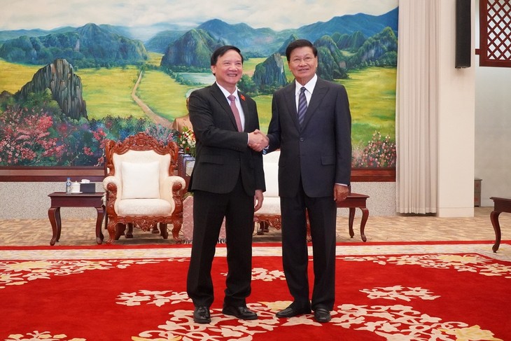 (ທ່ານຮອງປະທານສະພາແຫ່ງຊາດ ຫງວຽນຄັກດິ້ງ ເຂົ້າຢ້ຽມຂ່ຳນັບທ່ານເລຂາທິການໃຫຍ່, ປະທານປະເທດ ລາວ ທອງລຸນ ສີສຸລິດ)