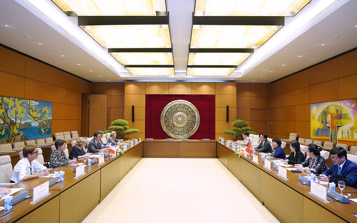 ວັນທີ 7 ກັນຍາ, ຢູ່ຮ່າໂນ້ຍ, ທ່ານປະທານສະພາແຫ່ງຊາດ ຫວຽດນາມ ເວືອງດິ່ງເຫວະ ໃຫ້ການຕ້ອນຮັບກຸ່ມສະມາຊິກລັດຖະສະພາ ມິດຕະພາບ ຝລັ່ງ - ຫວຽດນາມ ຂອງສະພາສູງ ຝລັ່ງ, ໂດຍທ່ານນາງ Catherine Deroche ປະທານກຸ່ມ ເປັນຫົວໜ້າຄະນະ ທີ່ພວມມີການຢ້ຽມຢາມ ແລະ ເຮັດວຽກຢູ່ ຫວຽດນາມ.