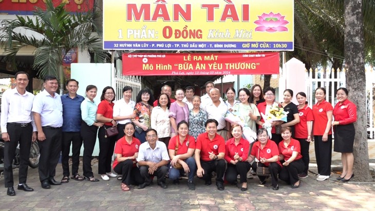 ແຕ່ກາງເດືອນມີນາ ຈົນເຖິງປະຈຸບັນ, ຢູ່ບໍລິເວນໂຮງຮຽນອະນຸບານ ຈ່າມີ 2, ເລກທີ 32 ຖະຫນົນ ຮີ່ງວັນຫລູຍ ຕາແສງ ຟູເລີ້ຍ ນະຄອນ ຖູເຢົ່າໂມດ ແຂວງ ບິ່ງເຢືອງ ໄດ້ກາຍເປັນສະຖານທີ່ລຶ້ງເຄີຍຂອງຄົນງານທຸກຍາກ, ຜູ້ປະສົບກັບຄວາມຫຍຸ້ງຍາກຫລາຍຄົນຢູ່ໃນບໍລິເວນ. ນີ້ແມ່ນບ່ອນມີຮູບແບບ “ຄາບເຂົ້າແຫ່ງຄວາມຮັກແພງ”, ໂດຍສະພາກາແດງຕາແສງ ຟູເລິ້ຍ ສົມທົບກັບ ຮ້ານອາຫານເຈ ເໝີນຕ໋າຍ ຜັນຂະຫຍາຍ ເພື່ອແນໃສ່ຮັບໃຊ້ຄາບອາຫານເຈໂດຍບໍ່ເກັບຄ່າໃຫ້ແກ່ທັງໝົດຜູ້ມີຄວາມຕ້ອງການ, ເປັນຕົ້ນແມ່ນຜູ້ຂາຍຫວຍຍ່ອຍ, ຜູ້ອອກແຮງງານ, ກຳມະກອນທີ່ປະສົບກັບຄວາມຫຍຸ້ງຍາກຢູ່ບໍລິເວນ.