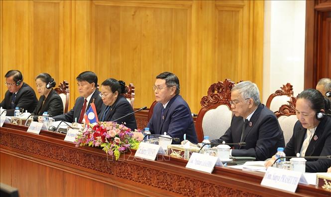 ທ່ານນາຍົກລັດຖະມົນຕີ ຟ້າມມິງຈິ້ງ ໄດ້ພົບປະກັບທ່ານປະທານສະພາແຫ່ງຊາດ ລາວ ໄຊສົມພອນ ພົມວິຫານ. ພາບ: ເຢືອງຢາງ/VNA