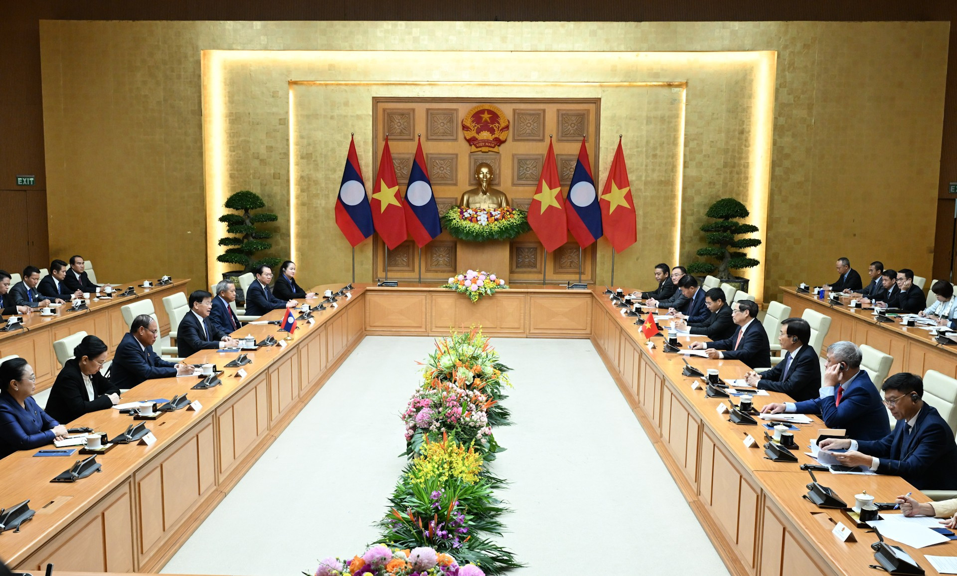 ຕອນບ່າຍວັນທີ 24 ຕຸລາ, ຢູ່ສຳນັກງານລັດຖະບານ, ທ່ານນາຍົກລັດຖະມົນຕີ ຫວຽດນາມ ຟ້າມມິນຈິງ ໄດ້ຕ້ອນຮັບ ທ່ານເລຂາທິການໃຫຍ່, ປະທານປະເທດ ລາວ ທອງລຸນ ສີສຸລິດ, ເນື່ອງໃນໂອກາດມາເຂົ້າຮ່ວມພິທີລົງນາມສົນທິສັນຍາອົງການສະຫະປະຊາຊາດວ່າດ້ວຍການຕ້ານອາດຊະຍາກຳທາງໄຊເບີ (ສົນທິສັນຍາ ຮ່າໂນ້ຍ), ຢູ່ນະຄອນຫຼວງ ຮ່າໂນ້ຍ. ຢູ່ທີ່ນີ້, ທ່ານນາຍົກລັດຖະມົນຕີ ຟ້າມມິນຈິງ ໃຫ້ຮູ້ວ່າ ພິທີລົງນາມສົນທິສັນຍາ ຮ່າໂນ້ຍ ແມ່ນເຫດການສາກົນສຳຄັນ ແລະ ຫວຽດນາມ ເປັນກຽດໄດ້ເປັນເຈົ້າພາບຈັດຂຶ້ນ. ສົນທິສັນຍາຈະສ້າງແລວ ແລະ ຂອບນິຕິກຳໃໝ່, ຊ່ວຍໃຫ້ບັນດາປະເທດສະມາຊິກໃນໂລກ ພ້ອມກັນຮ່ວມແຮງຮ່ວມໃຈຕ້ານອາດຊະຍາກຳທາງໄຊເບີ, ປະກອບສ່ວນຮັບປະກັນຄວາມໝັ້ນຄົງ, ຄວາມປອດໄພທາງອິນເຕີເນັດທົ່ວໂລກ.