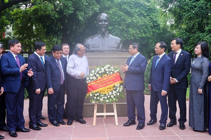 ທ່ານນາຍົກລັດຖະມົນຕີ ຟ້າມມິງຈິງ ຖະຫວາຍດອກໄມ້ຢູ່ອະນຸສາວາລີປະທານໂຮ່ຈີມິນ ຢູ່ນິວເດລີ