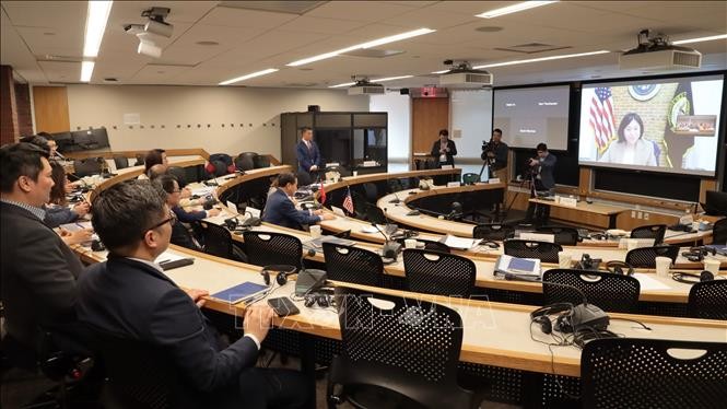 ຕອນບ່າຍວັນທີ 2 ເມສາ, ໃນເວລາເຂົ້າຮ່ວມໂຄງການຄຸ້ມຄອງການນຳ ຂັ້ນສູງ ຫວຽດນາມ (VELP) ຢູ່ Boston (ອາເມລິກາ), ທ່ານຮອງນາຍົກລັດຖະມົນຕີ ຫວຽດນາມ ເລມິງຄ໊າຍ ໄດ້ມີການແລກປ່ຽນກັບທ່ານນາງ Katherine Tai ຜູ້ຕາງໜ້າ ການຄ້າ ອາເມລິກາ.