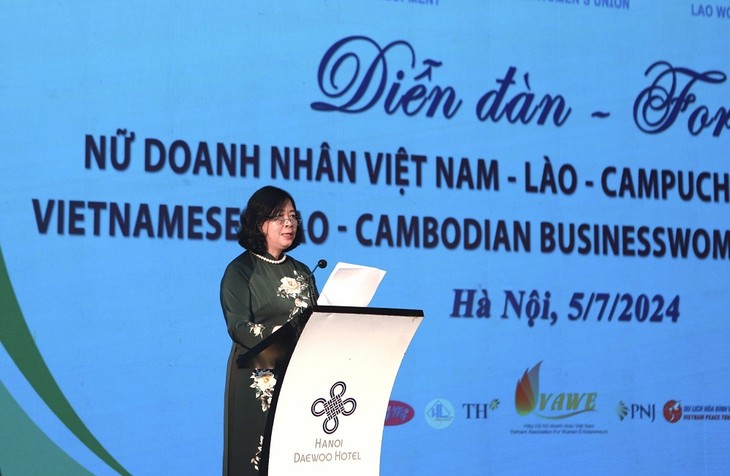 ເວທີປາໄສເຊື່ອມຕໍ່ ແລະ ພົບປະແລກປ່ຽນນັກທຸລະກິດຍິງ 3 ປະເທດ ຫວຽດນາມ - ລາວ - ກຳປູເຈຍ ດ້ວຍຫົວຂໍ້ “ນັກທຸລະກິດຍິງ ແລະ ເສດຖະກິດສີຂຽວ” ຈັດຂຶ້ນໃນຕອນເຊົ້າວັນທີ 05 ກໍລະກົດ, ຢູ່ ຮ່າໂນ້ຍ. ເວທີປາໄສແມ່ນຂໍ້ລິເລີມຂອງສະຫະພັນແມ່ຍິງ ຫວຽດນາມ, ສະຫະພັນແມ່ຍິງ ລາວ ແລະ ສະຫະພັນແມ່ຍິງ ກຳປູເຈຍ ເພື່ອສັນຕິພາບ ແລະ ພັດທະນາ ຮ່ວມຈັດຂຶ້ນ.