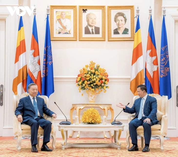 ໂດຍສືບຕໍ່ບັນດາການເຄື່ອນໄຫວໃນຂອບເຂດການຢ້ຽມຢາມ ແລະ ເຮັດວຽກຢູ່ລາຊະອານາຈັກ ກຳປູເຈຍ, ວັນທີ 24 ມັງກອນ, ທ່ານລັດຖະມົນຕີກະຊວງຕຳຫຼວດ ຫວຽດນາມ ໂຕເລິມ ໄດ້ເຂົ້າຢ້ຽມຂ່ຳນັບທ່ານນາຍົກລັດຖະມົນຕີ ກຳປູເຈຍ Hun Manet.