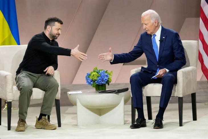 ການພົບປະເພື່ອແນໃສ່ປຶກສາຫາລືກ່ຽວກັບການສະໜັບສະໜູນຂອງ ອາເມລິກາ ທີ່ມີຕໍ່ ຢູແກຼນ ໃນການປະທະກັນ ກັບ ລັດເຊຍ. ສອງຝ່າຍໄດ້ແລກປ່ຽນກ່ຽວກັບສະພາບການຕົວຈິງ ແລະ ຄວາມມານະພະຍາຍາມຂອງ ອາເມລິກາ ເພື່ອແນໃສ່ສະໜອງບັນດາອຸປະກອນທີ່ຈຳເປັນໃຫ້ແກ່ ຢູແກຼນ. ທີ່ການພົບປະ, ທ່ານປະທານາທິບໍດີ Joe Biden ໄດ້ປະກາດບ້ວງເງິນໜູນຊ່ວຍດ້ານຄວາມໝັ້ນຄົງໃໝ່ໃຫ້ແກ່ ຢູແກູນ ລວມມີລະບົບລູກສອນໄຟປ້ອງກັນອາກາດ Patriot, ລູກສອນໄຟຕີສະກັດກັ້ນ ແລະ ລູກປືນໃຫຍ່. ນີ້ແມ່ນບ້ວງເງິນໜູນຊ່ວຍຄັ້ງທີ 8 ຂອງ ອາເມລິກາ ສະຫງວນໃຫ້ແກ່ ຢູແກຼນ ນັບແຕ່ເມື່ອທ່ານປະທານາທິບໍດີ Joe Biden ເຊັນອະນຸມັດຜ່ານແຜນງົບປະມານເພີ່ມເຕີມໃຫ້ແກ່ຄວາມໝັ້ນຄົງແຫ່ງຊາດ.