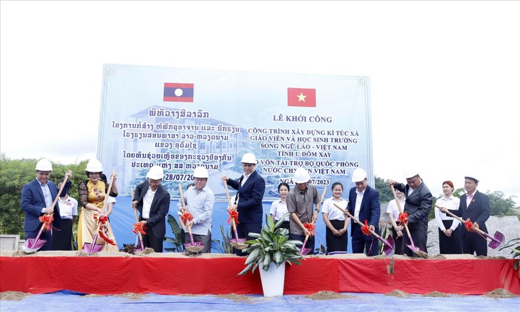 ຕອນເຊົ້າວັນທີ 28 ກໍລະກົດ, ຢູ່ແຂວງ ອຸດົມໄຊ, ທາງພາກເໜືອຂອງລາວ, ສະມາຄົມຊາວ ຫວຽດນາມ ຢູ່ແຂວງ ອຸດົມໄຊ ໄດ້ຈັດພິທີວາງສິລະລຶກກໍ່ສ້າງກິດຈະກຳຫໍພັກໃຫ້ແກ່ຄູສອນ ແລະ ນັກຮຽນ ຂຶ້ນກັບໂຄງການກໍ່ສ້າງໂຮງຮຽນສອງພາສາ ລາວ - ຫວຽດ ແຂວງ ອຸດົມໄຊ.