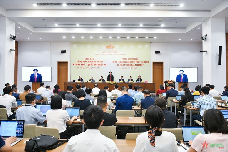 ຕອນເຊົ້າວັນທີ 19 ພຶດສະພາ, ຢູ່ຫໍສະພາແຫ່ງຊາດ, ທ່ານເລຂາທິການໃຫຍ່ສະພາແຫ່ງຊາດ, ຫົວໜ້າຫ້ອງວ່າການສະພາຫ່ງຊາດ ບຸຍວັນເກືອງ ໄດ້ເປັນປະທານກອງປະຊຸມຖະແຫຼງຂ່າວ ກ່ຽວກັບການຄາດຄະເນລາຍການຂອງກອງປະຊຸມສະໄໝສາມັນເທື່ອທີ 7, ສະພາແຫ່ງຊາດ ຫວຽດນາມ ຊຸດທີ XV. ທ່ານຮອງຫົວໜ້າຫ້ອງວ່າການສະພາແຫ່ງຊາດ ວູມິງຕວນ ໃຫ້ຮູ້ວ່າ, ກອງປະຊຸມເທື່ອທີ 7 ຈະຈັດວາລະປະຊຸມກະກຽມ ແລະ ຈັດພິທີໄຂຢ່າງສົມກຽດໃນວັນທີ 20 ພຶດສະພາ, ຄາດວ່າ, ພິທີອັດກອງປະຊຸມຈະຈັດຂຶ້ນໃນວັນທີ 28 ມິຖຸນາ, ຕາມຮູບແບບໂຮມປະຊຸມຢູ່ຫໍສະພາແຫ່ງຊາດ, ນະຄອນຫຼວງ ຮ່າໂນ້ຍ.