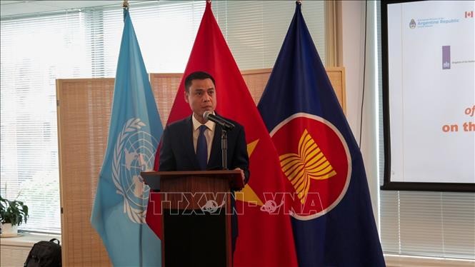 ເນື່ອງໃນໂອກາດນີ້, ທ່ານເອກອັກຄະລັດຖະທູດ ດັ້ງຮວ່າງຢາງ, ຫົວໜ້າຄະນະຜູ້ຕາງໜ້າ ຫວຽດນາມ ປະຈຳ ສປຊ, ເປັນປະທານງານພົບປະສັງສັນປະຈຳປີ ບັນດາປະເທດສະຊິກກຸ່ມເພື່ອນມິດ UNCLOS 1982, ພ້ອມທັງສະເຫຼີມສະຫຼອງວັນສ້າງຕັ້ງກຸ່ມ ຄົບຮອບ 2 ປີ. ກ່າວຄຳເຫັນນະທີ່ນີ້, ທ່ານເອກອັກຄະລັດຖະທູດ ດັ້ງຮວ່າງຢາງ ຮຽກຮ້ອງໃຫ້ບັນດາປະເທດສະມາຊິກ ພ້ອມກັນເຂົ້າຮ່ວມຄວາມມານະພະຍາຍາມລວມ ເພື່ອປະກອບສ່ວນແກ່ໄຂບັນດາສິ່ງທ້າທາຍກ່ຽວກັບທະເລ ແລະ ມະຫາສະໝຸດ ພວມວາງອອກໃນປັດຈຸບັນ, ປະຕິບັດສຳເລັດເປົ້າໝາຍ ທີ 14 ກ່ຽວກັບການພັດທະນາແບບຍືນຍົງ. ທ່ານກໍເນັ້ນໜັກວ່າ ທາງກຸ່ມ ຈະສືບຕໍ່ຊຸກຍູ້ການເຈລະຈາ ແລະ ການຮ່ວມມືຫຼາຍຝ່າຍໃນການປະຕິບັດ ແລະ ປົກປ້ອງລັກສະນະທົ່ວເຖິງ ຂອງ UNCLOS 1982, ຢັ້ງຢືນຄືນໃໝ່ວ່າ UNCLOS 1982 ແມ່ນກອບນິຕິກຳຮອບດ້ານ, ດັດປັບທຸກການເຄື່ອນໄຫວທີ່ກ່ຽວຂ້ອງເຖິງທະເລ ແລະ ມະຫາສະໝຸດ.