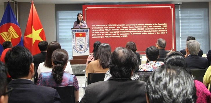 ວັນທີ 11 ສິງຫາ, ຢູ່ນະຄອນ ໂຮ່ຈີມິນ, ສະຫະພັນບັນດາອົງການຈັດຕັ້ງມິດຕະພາຍນະຄອນ, ສະມາຄົມມິດຕະພາບຫວຽດນາມ-ອາຊີຕາເວັນອອກສ່ຽງໃຕ້ ສົມທົບກັບມະຫາວິທະຍາໄລເປີດ ນະຄອນ ໂຮ່ຈີມິນ ໄດ້ຈັດພິທີ ສະເຫຼີມສະຫຼອງ 28 ປີແຫ່ງວັນ ຫວຽດນາມ ເຂົ້າເປັນສະມາຊິກ ອາຊຽນ (28/7/1995 - 28/7/2023) ແລະ 56 ປີແຫ່ງວັນສ້າງຕັ້ງ ອາຊຽນ (8/8/1967 - 8/8/2023).
